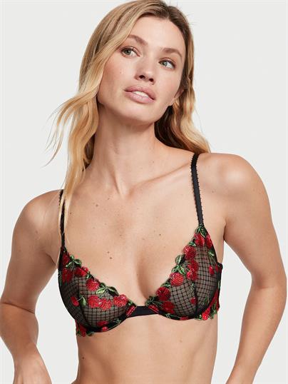 Üstünde kirazların da bulunduğu, görülmeye değer kiraz işlemeli low-cut demi sütyen ortamı romantik bir havaya bürünüyor. Lüks işlemeli low-cut demi sütyen seksi tasarıma benzersiz bir unsur katıyor.
